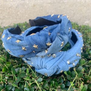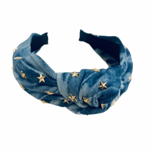 vintage denim star jeweled knotted headband
