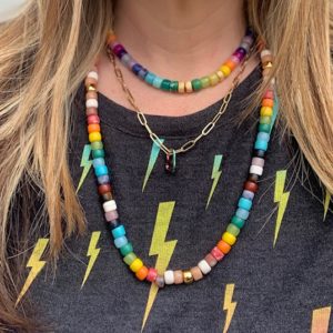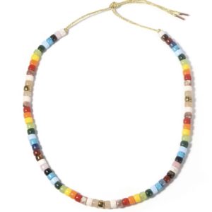 Multi color natural big stone tie on necklace
