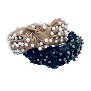 black gun metal pearl jeweled knotted headband