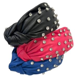 black vegan leather jeweled knotted headband