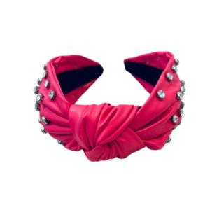 hot pink vegan leather jeweled knotted headband