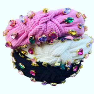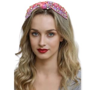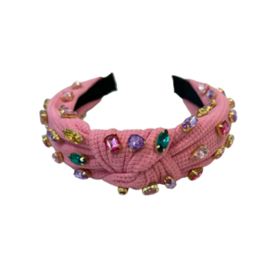 pink knot headband, embellished with multi color crystal rhinestones