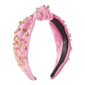 pink knot headband, embellished with gold butterflies and crystal rhinestones