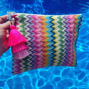 multi color raffia chevron stripe pouch with tassel
