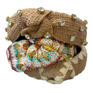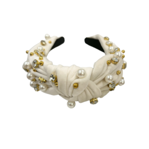 creme knot headband, embellished with multi color crystal rhinestones