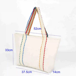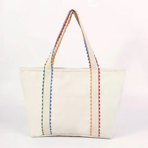 Canvas tote with multi color scalloped trim
