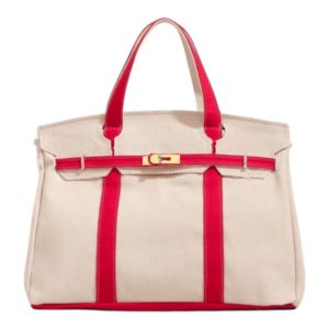 Luxury Style Canvas Boat Tote Bag with Red Strap and Gold Hardware