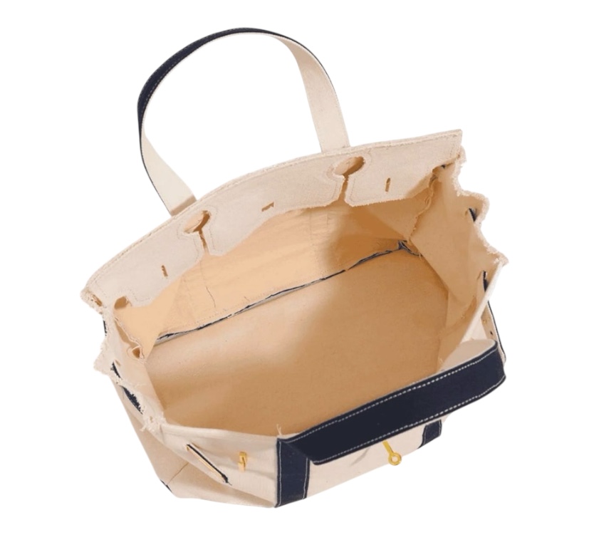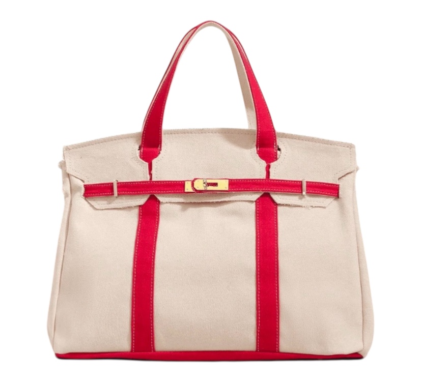 Luxury Style Canvas Boat Tote Bag with Red Strap and Gold Hardware