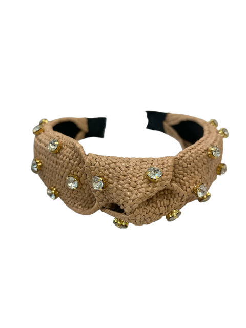 raffia embellished knot headband, adorned with clear crystals
